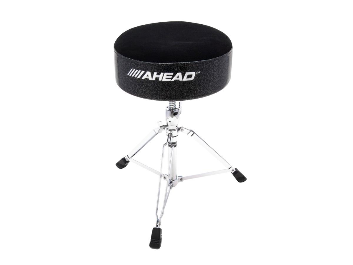 STOLICKA-AHEAD kulatý sedák,3.nohy,šroub, ART-BS - masivní bubenická stolička s trojnohou základnou, s dvojitými nohami, šroubovice, 13 cm vysoký pohodlný sedák potaženým semišem, výška stoličky lze nastavit v rozmezí 46 - 61 cm