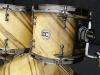DC-Custom drums, African Marble - každý člověk, který se věnuje opravám a výrobě bicích nástrojů zatouží udělat něco vyjímečného, nějaký krásný nástroj, který se vymyká bežné produkci. Přesně proto jsme navrhli tento set - korpusy jsou 6-ti vrstvé javorové o síle 5,4 mm se zpevňujícími prstenci o síle 5,4 mm, s vrchní exotickou dýhou, která se jmenuje African Marble (africký mramor), která je na korpusu uložena pod úhlem 45°. Uložení dýhy na korpus po tímto úhlem velmi zvyšuje spotřebu materiálu a tím i cenu korpusů. Z této dřeviny jse už v minulosti viděli nádherné soupravy z dílny DW, nebo Sonor a možná i proto padlo rozhodnutí vyrobit podobně krásný set. Veškerý hardware bubnů je bežný profesionální kvality v povrchové úpravě black nickel, která dodává soupravě odpovídající punc nádherného nástroje.