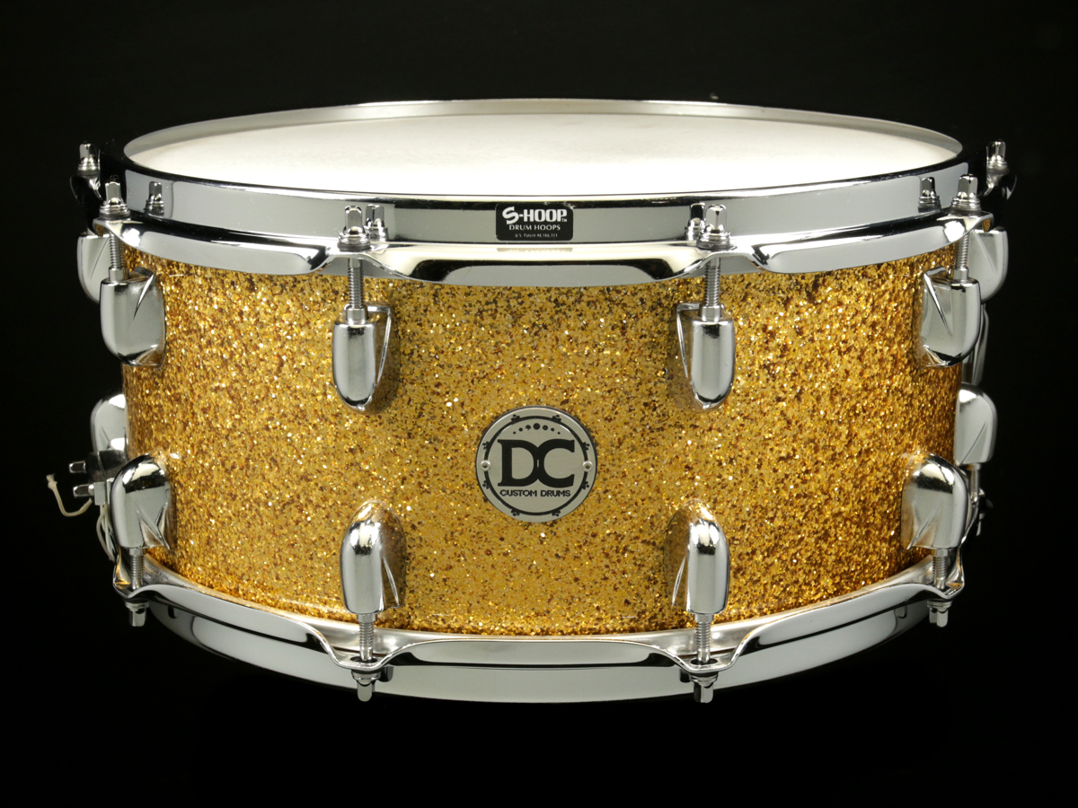 DC-CUSTOM DRUMS US MAPLE 14x6“ - klasický tenkostěnný javorový bubínek vyrobený z korpusu US maple o síle 5 mm, bubínek je lakován v dekoru Gold Sparkle a je osazen chromovaným hardware, 20 mušlí, obruče typu S HOOP, klasická mechanika strunění a fosforbronzové strunění. Bubínek je osazen blánami Evans Genera Dry na hrací straně a Evans Hazy 300 na straně rezonanční. Bubínek je razantní, průbojný s dobrou citlivostí.