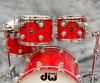 DW - Collector's Series - souprava vyrobena v roce 2002, z důvodu poškození korpusu BD v oblasti pravé nohy byla souprava v dílně Drumcenter.cz opravena. Narušený korpus BD v rozsahu cca 3-4 cm byl opraven slepením a přeborušením. Vnitřní strana korpusu je předýhovana javorovou dýhou. Vzhledem k prokazatelnosti rozsahu opravy byla "jizva" z venkovní strany bubnu ponechána a je po novým lakem soupravy viditelná. Vliv opravy na zvuk BD je dle našeho názoru zanedbatelný. Ostatní bubny soupravy jsou v perfektní stavu, byly pouze přelakovány a jejich úložné hrany zkontrolovány a opraveny.