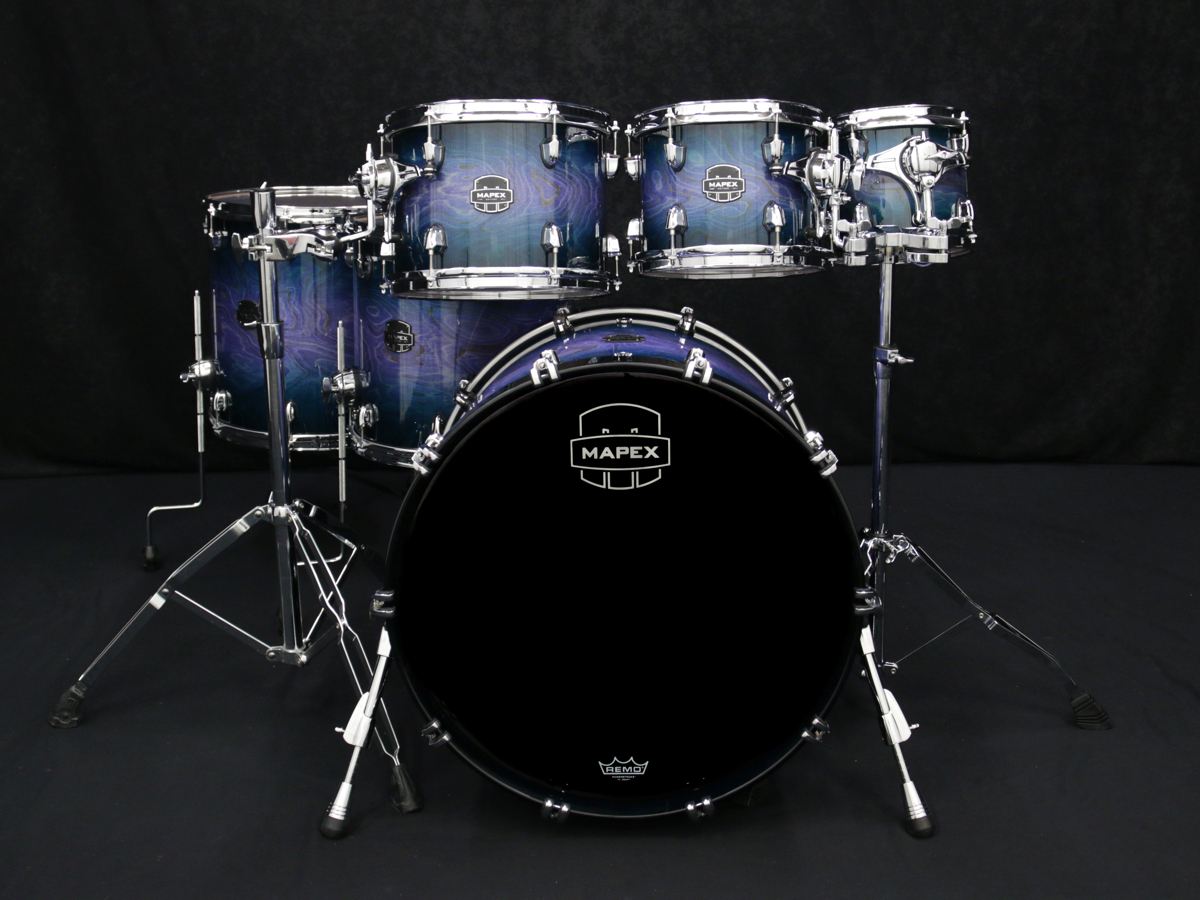 Mapex Saturn VI. - bicí vyrobené z kombinace dřevin javoru a ořechu, bubny produkují charakteristický zvuk, který si zachovává jasnost javoru a ve spodních frekvencích pak přidává více tepla a kulatosti.