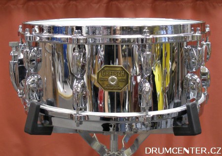 přes veškeré úsilí a hlednání se mi nepodařilo prozatím zjistit o jaký typ bubínku z produkce Gretsch vlastně jde. Na štítku uvnitř bubínku je toto číslo bohužel nečitelné a přes mnoha hodinové hledání na webu jsem tento bubínek neobjevil. V každém případě, se jedná o mosazný-pochromovaný bubínek ze 70-tých let, je osazen 20-ti ks jednotlivých Gretsch mušlí a klasickým mechanismem napínání pružin "Lighting" této firmy. Najde-li se někdo, kdo mi poradí, budu moc rád.