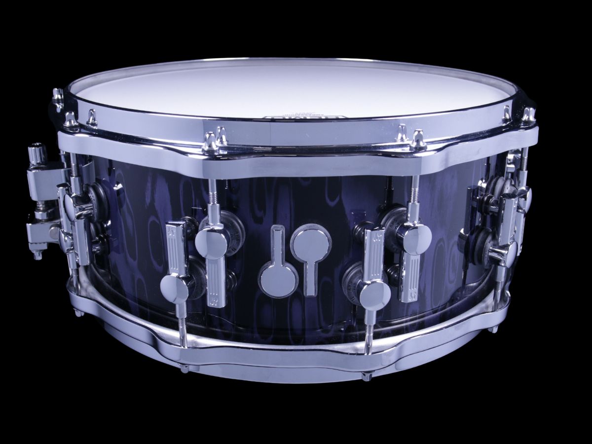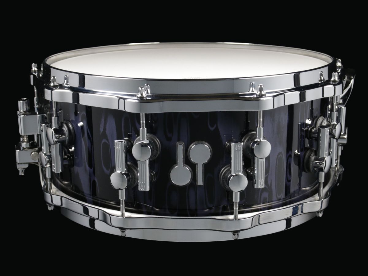 Povrchová úprava snare je lesklý lak Grey Tribal, konstrukce korpusu je Vintage Maple, tedy tenkostěnný se zpevňujícími prstenci, lité Die-Cast obruče