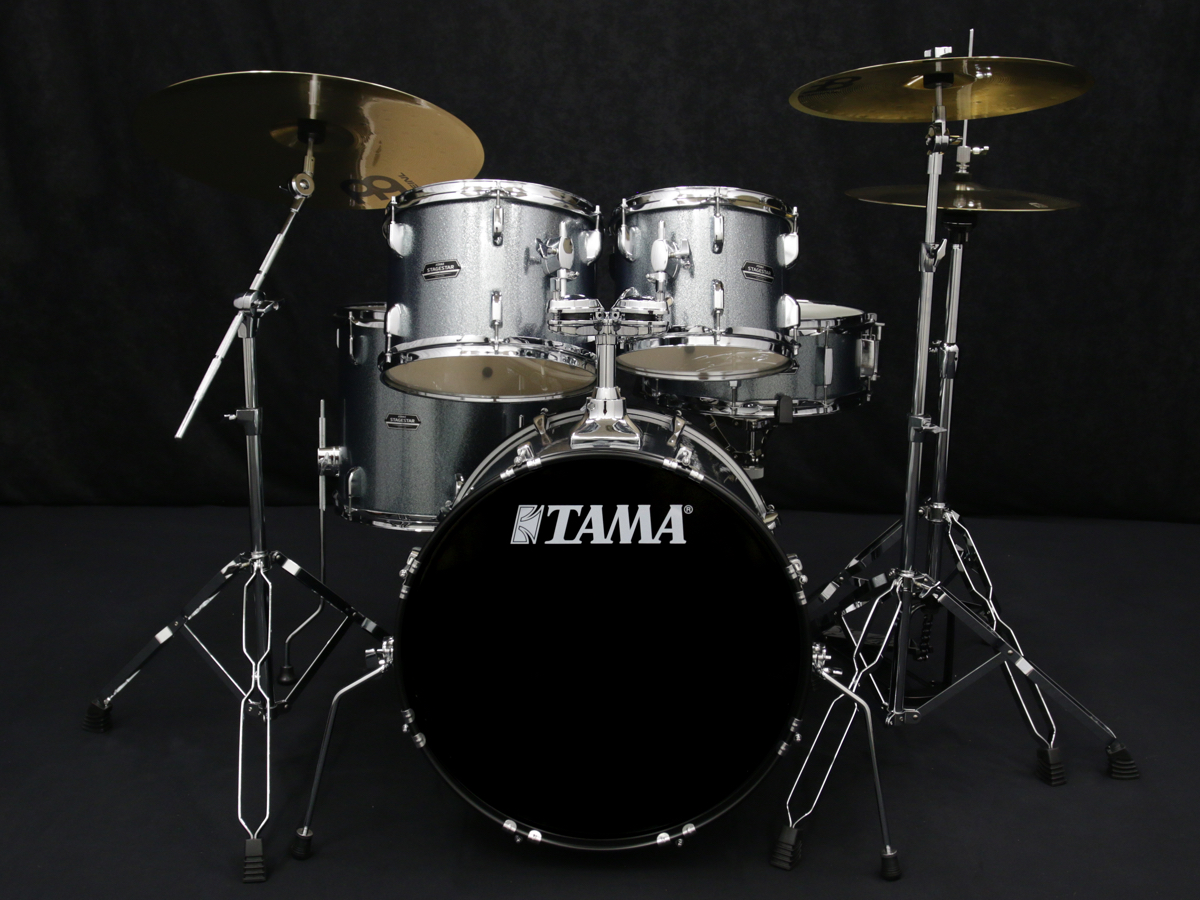 TAMA STAGESTAR - modelová řada určená začínájícím hráčům, kteří hledají solidní kompletní set do svých bubenických začátků. Korpusy soupravy jsou vyrobeny z topolu ze šesti vrstev o celkové síle 7 mm. To dává soupravě teplný plný tón se středním atakem. Povrch je opatřen odolnou fólií v moderním designu. Hardware soupravy tvoří stojan pro snare, stojan pro hihat, činelový stojan s ramenem, single pedál a bubenická stolička, která je již při této ceně vybavena šroubovicí. Nechybí také bytelný dvojitý tom holder s kulovými klouby pro přesné nastavení polohy tomů. K sadě je jsou také dodávány činely MEINL BCS v rozměrech 14" hi-hat, 16" crash a 20" ride.