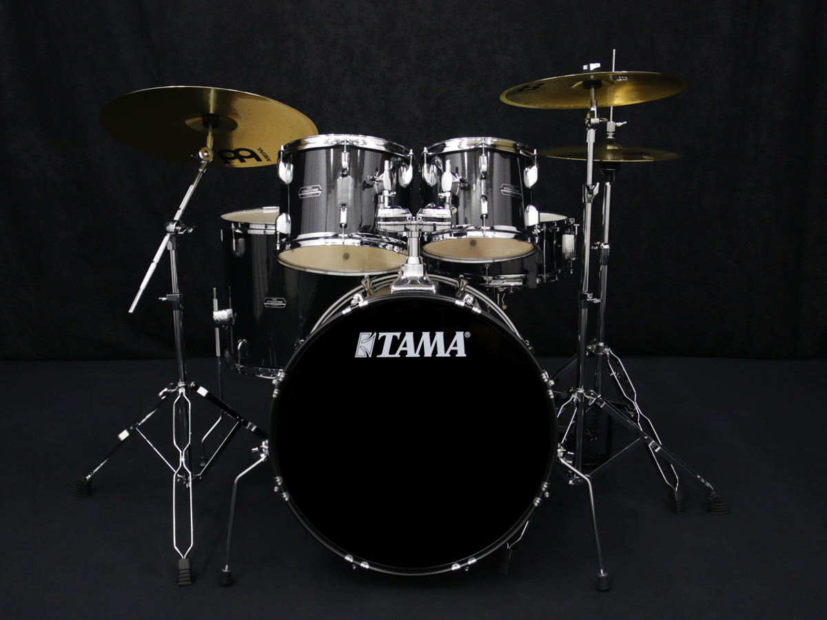 TAMA STAGESTAR - modelová řada určená začínájícím hráčům, kteří hledají solidní kompletní set do svých bubenických začátků. Korpusy soupravy jsou vyrobeny z topolu ze šesti vrstev o celkové síle 7 mm. To dává soupravě teplný plný tón se středním atakem. Povrch je opatřen odolnou fólií v moderním designu. Hardware soupravy tvoří stojan pro snare, stojan pro hihat, činelový stojan s ramenem, single pedál a bubenická stolička, která je již při této ceně vybavena šroubovicí. Nechybí také bytelný dvojitý tom holder s kulovými klouby pro přesné nastavení polohy tomů. K sadě je jsou také dodávány činely MEINL BCS v rozměrech 14" hi-hat, 16" crash a 20" ride.