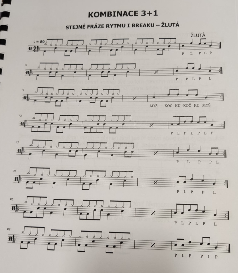 "publikace je určena především žákům a učitelům Základních uměleckých škol. Vychází z mé učitelské ,skladatelské i koncertní praxe a snad jsem tam dal vše co si myslím, že by bubeník měl zvládat v kapele. Začíná od úplných začátků a postupně se náročnost zvedá. Pro zjednodušení a rychlé pochopení not slouží barvy breaku a pomocná slova na skupinky not. Velké množství breaků,rytmů,kombinací 3+1, základní techniky na snare a několik sól. Zaměření POP,FUNKY, ROCK A METAL. Vše pro praktické využití tak, aby se dobře hrálo i poslouchalo. Celá škola je i v mp3 plus několik playalongů pro cvičení. Pokud by byl zájem, mohu provést workshopy které dělám pro zušky, ale i pro jednotlivce i pro souborovou hru. Bubnům zdar Milan Kratochvíl."