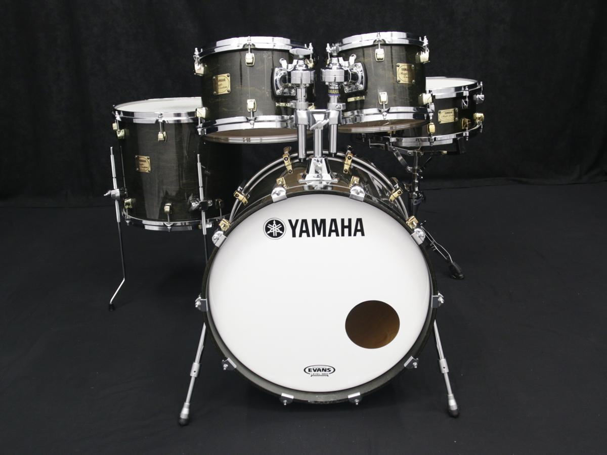Yamaha Maple Custom – elitní, dnes již nevyráběná série Yamaha, zhotovená z toho nejlepšího javorového dřeva jaké bylo v době výroby možné zajistit, basový buben je 10-ti vrstvý a tom tomy jsou 7-mi vrstvé, uchycení tomů je bez YESS, nicméně na bubnu je úchyt, kdy je mezi korpus a tom holder vložena speciální destička, která obsahuje 4 kusy gumového zavěšení-silentblok, takže je úchyt bubnu od korpusu zcela izolován, což podporuje delší zvukovou rezonanci a kvalitu tónu. Veškeré obruče TT a FTT jsou hliníkové, které přidávají teplotu tónu javorového dřeva, bubny jsou velice vyhrané, jejich úložné hrany byly revidovány a přebroušeny, TT15x13 byl konvertován na floor tom za pomoci orig. úchytů Yamaha, souprava je vybavena téměř novými blánami (nástroj je v obchodě a občas do něj někdo bouchne za účelem sluchového vjemu) REMO Emperor Coated, rezonanční jsou nové REMO Ambassador Clear a na BD jsou blány Evans EQ4 Clear a rezonanční Evans RGCW. Snare bylo rovněž podroben servisní kontrole, kdy musely být vyměněny mušle, které byly poškozené (dávný neduh těchto mušlí, kdy se stává, že ladění někdo přežene, přetáhne velkou silou ulomí se fixující trny mušlí) z tohoto důvodu jsou horní mušle chromované a spodní zlacené. Jedná se o vzácný set splňující ty nejvyšší kriteria pro kvalitu bicí soupravy, je ve světě žádaným, vyhledávaným a taky poměrně drahým nástrojem, který se na trhu objevuje už jen velmi zřídka.