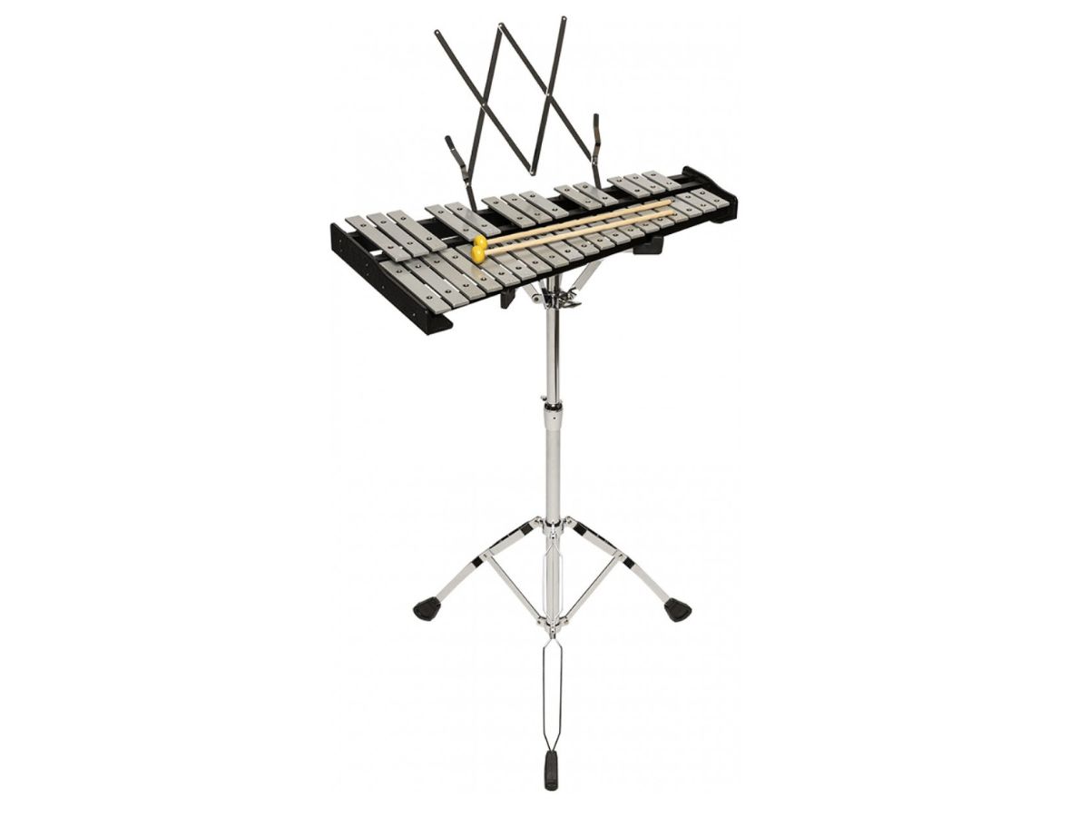 STAGG BELL-SET 32 - kompletní sada metalofonu s 32 kameny (2,5 oktávy, F5-C8), součástí je také cvičný pad, jednoduchý notový pultík, stojan, 2 páry paliček a nylonové pouzdro